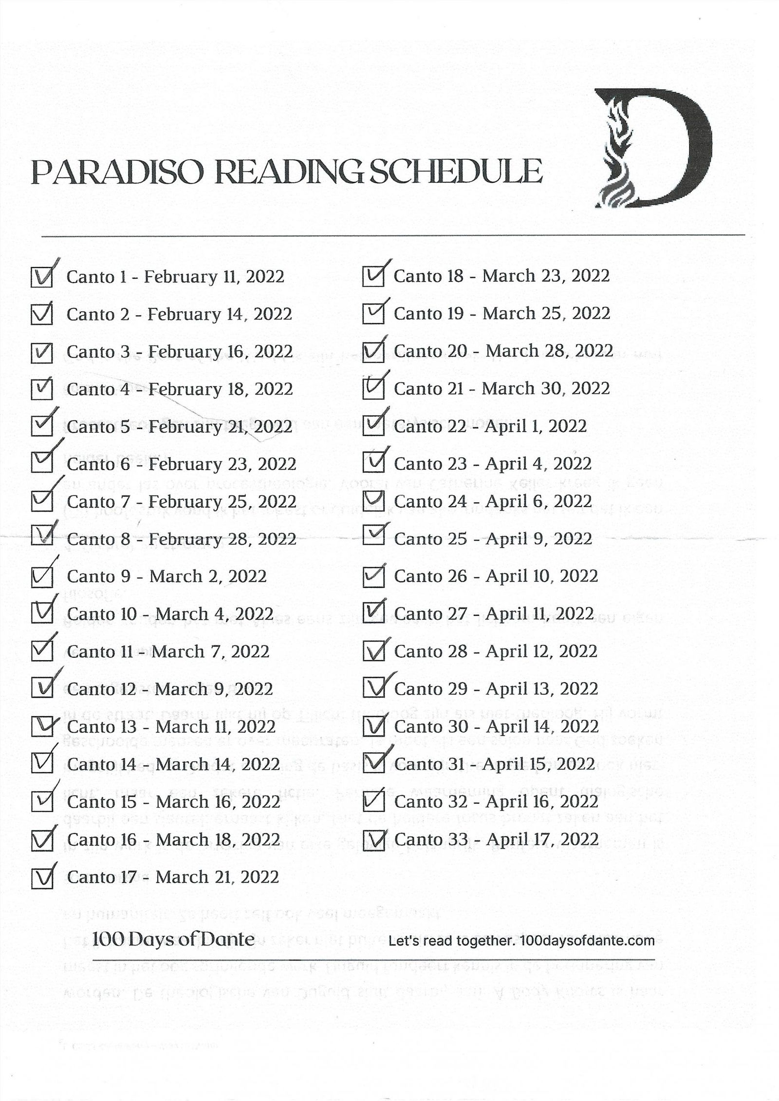 Ik had het kolossale dichtwerk al eens eerder, tijdens een vakantie, gelezen. Ik geef toe: je kunt lichtere kost bedenken voor op het strand of het tuinterras, maar ik wilde het destijds een keer gelezen hebben. De afgelopen maanden kon ik het 596 pagina’s dikke boek in een aanmerkelijk langzamer tempo lezen, maar het viel me eerlijk gezegd bepaald niet lichter. Er waren dagen bij dat ik me er toe moest zetten. Maar misschien, zo bedacht ik me halverwege, is dat wel de beste manier om het te lezen: je ervaring als lezer valt samen met de inhoud – het boek beschrijft een lange, moeizame tocht door het hiernamaals van hel via vagevuur naar hemel.