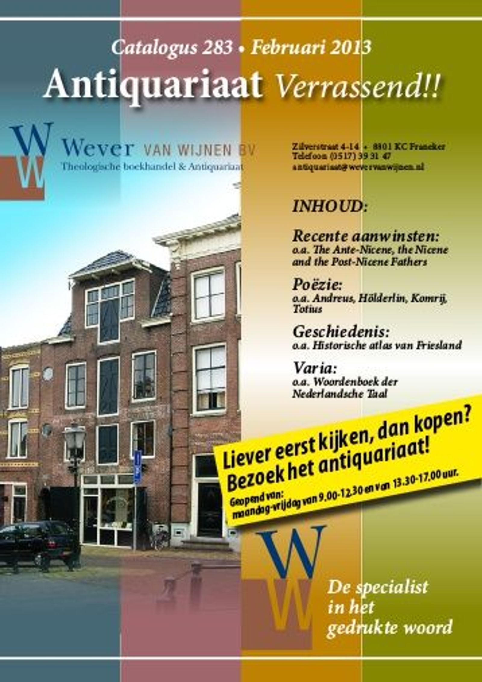 Wever was vooral een begrip door de enorme hoeveelheid tweedehands boeken. Regelmatig viel er een nieuwe catalogus op de deurmat boordevol theologisch snoepgoed, te krijgen voor een habbekrats. Meestal belde een paar dagen later de postbode bij me aan met een flink pakket uit Franeker. Smullen geblazen!