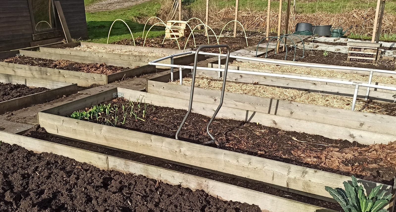 Inmiddels ben ik op mijn 140 m2 voor driekwart klaar met woelen. De rest van de percelen ligt nog onder het stro. Dat houd ik even zo. Ik heb ze nog niet nodig, en rust is voor het bodemleven (insecten, wormen, bacteriën, schimmels) ook goed. Maar het startsein heeft dus geklonken.