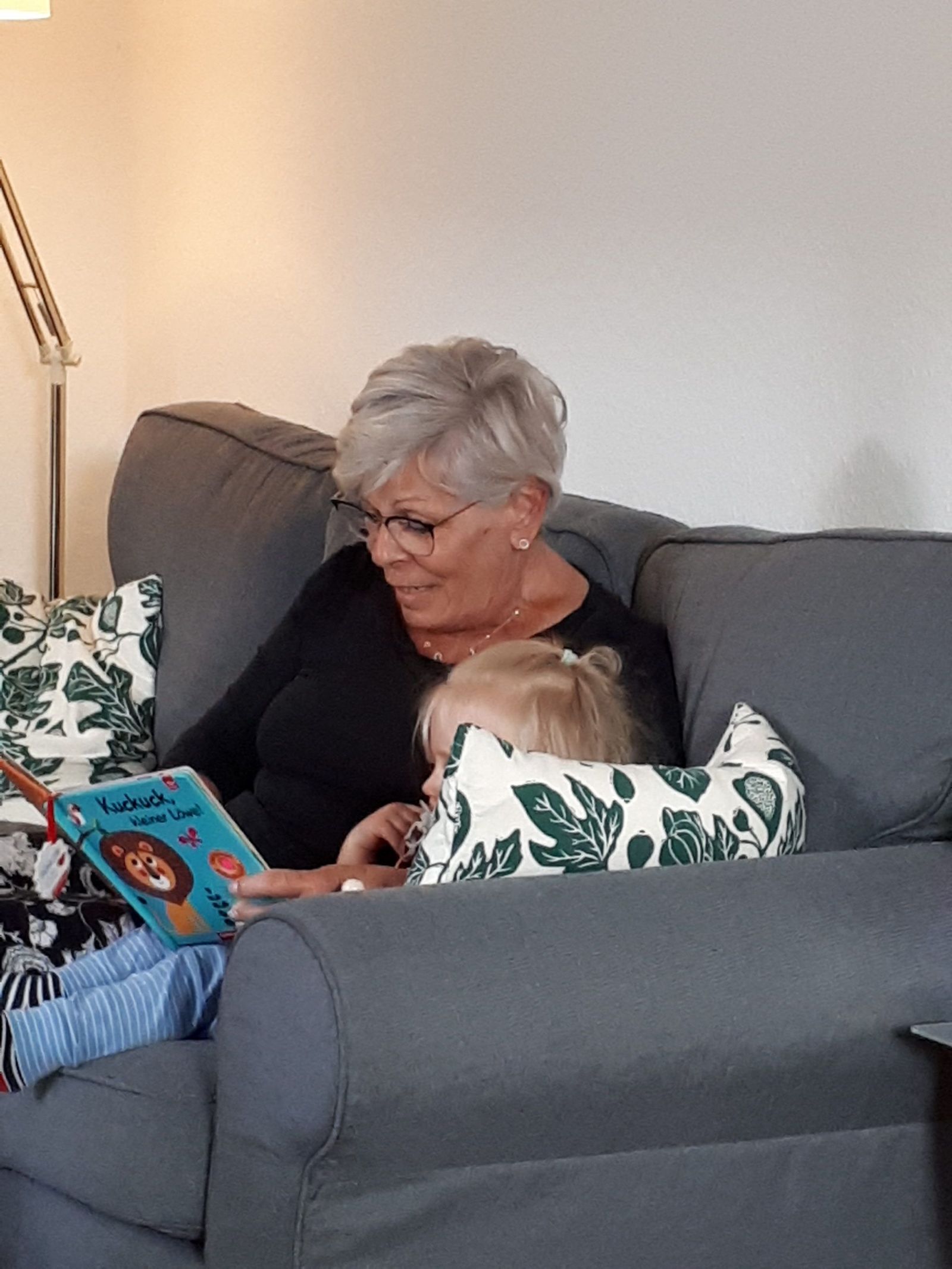 Onderweg vroeg ik me al af: hoe zou ze reageren? Ze is anderhalf en op die leeftijd gaan ontwikkelingen snel. Zou ze ons nog wel kennen? Ze deed net haar middagdutje toen we aankwamen. Maar toen ze wakker werd en de kamer inkwam, was het meteen: ‘Da ist ja opa!’ En ze vlijde zich meteen tegen me aan. Rijker kan een mens niet worden.