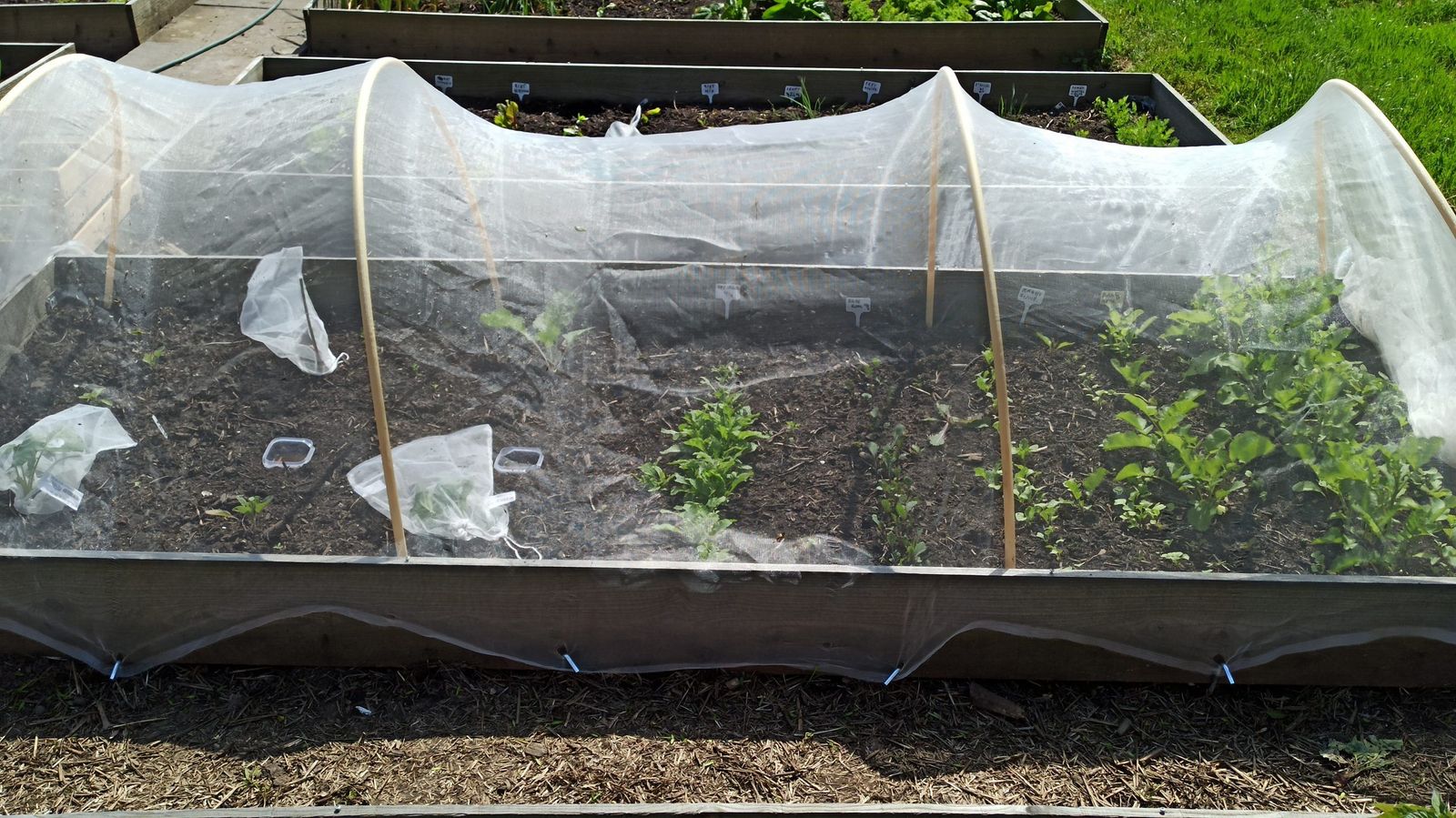 Meteen naar de dichtstbijzijnde filiaal gesneld natuurlijk. Nu staat wat er nog van mijn kolen over is onder zo’n netje. Maar voor de zekerheid heb ik maar weer wat bijgezaaid. Nu maar afwachten. Want tuinieren is, ook in maanden van drukte, grotendeels wachten. En bijleren.