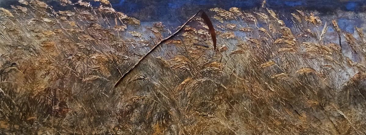 'Aus Herzen und Hirnen / sprießen die Halme der Nacht, / und ein Wort, von Sensen gesprochen, / neigt sie ins Leben.' Deze cryptische woorden van de dichter Paul Celan staan boven een gigantisch schilderij (4.70 x 8.40) van de Duitse kunstenaar Anselm Kiefer.